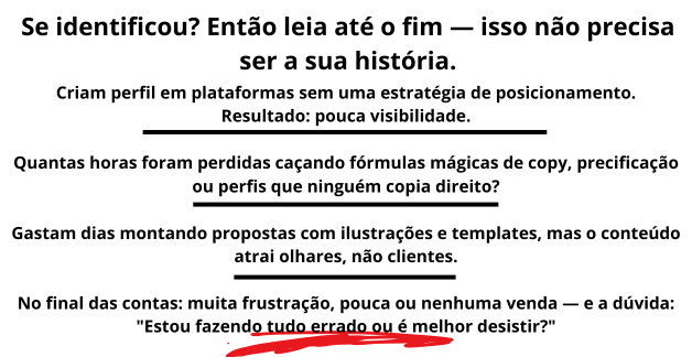 “Quer expor seu portfólio, enviar propostas, personalizar perfis em plataformas e… mesmo assim não fechar ninguém?”